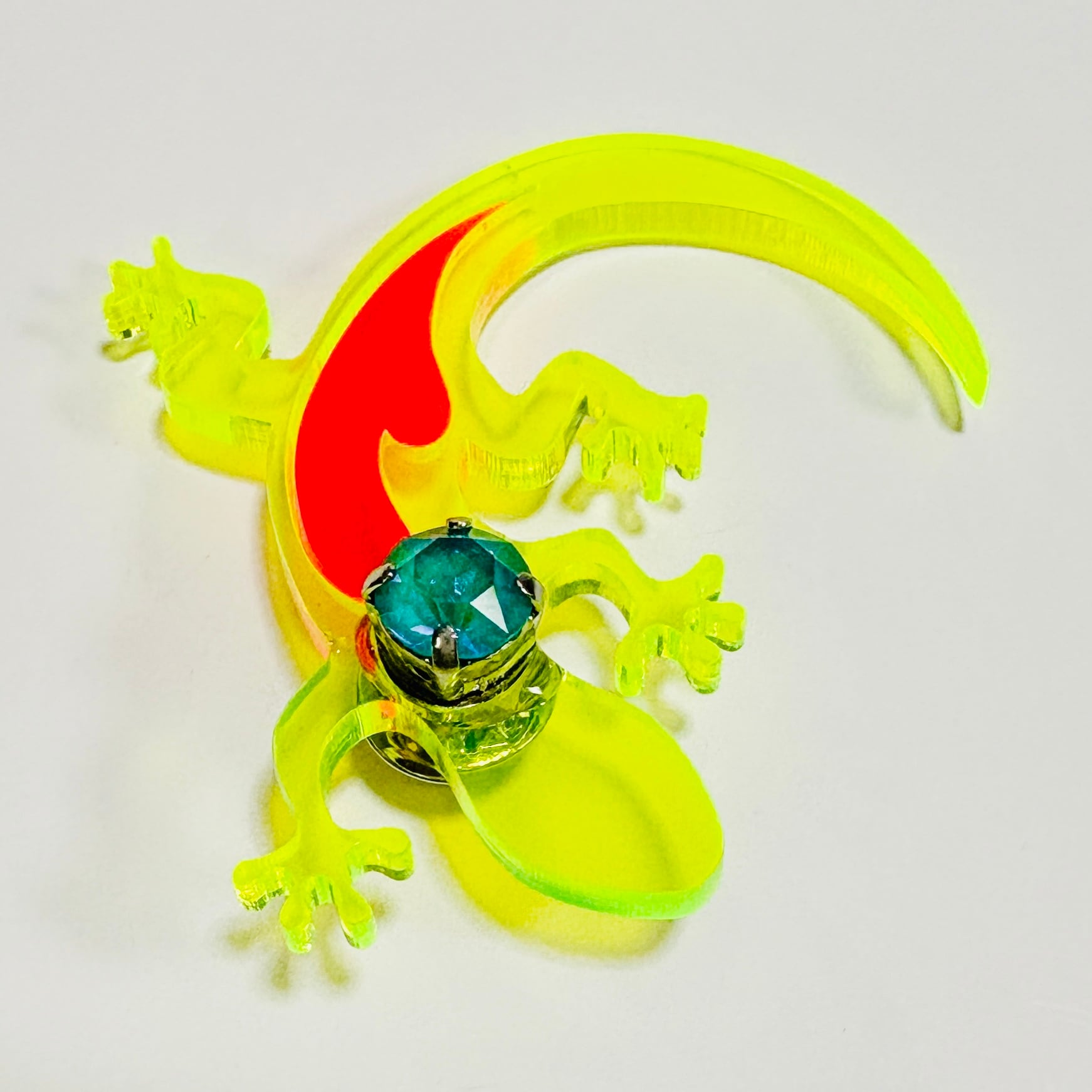 ピンタック アクリルヤモリ ビジュー付き _ネオンイエロー×ピンクB