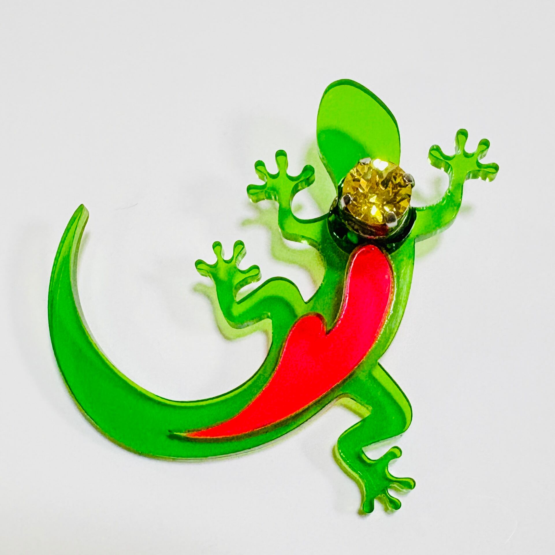 ピンタック アクリルヤモリ イエロービジュー付き _グリーン×ピンクH