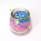 ピンクッション・mixウールの針山 コルクビン付き B : ピンク×ブルー