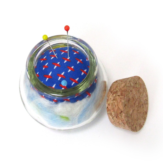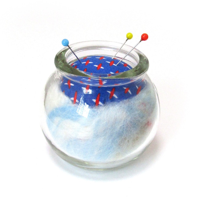 ピンクッション・mixウールの針山 コルクビン付き E : ホワイト×ブルー