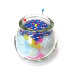 コロンとしたフォルムが可愛い、ビンのピンクッションです。
