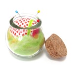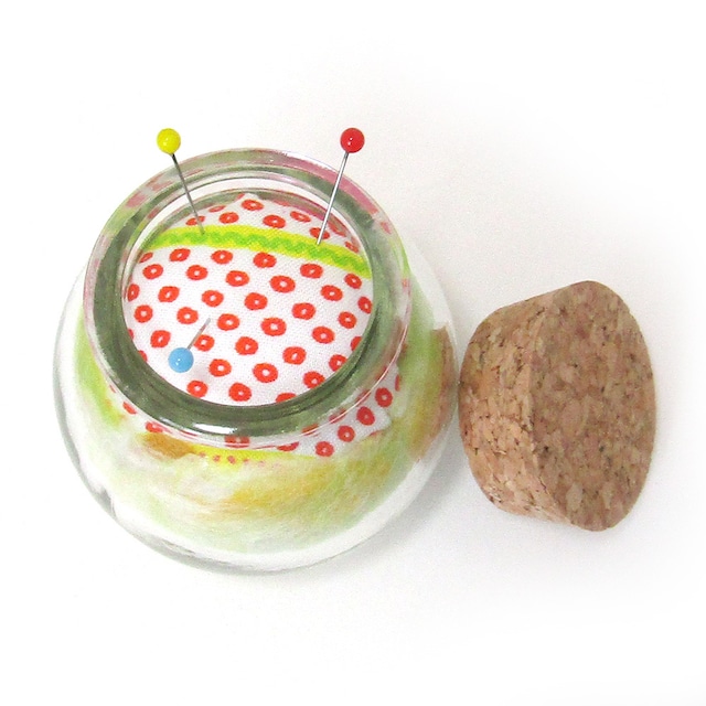 コロンとしたフォルムが可愛い、ビンのピンクッションです。