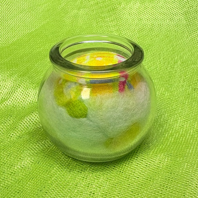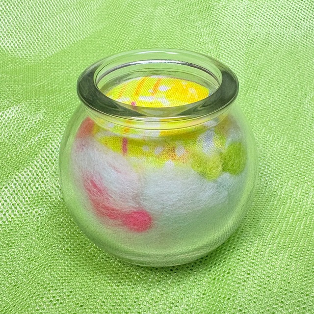 ピンクッション・mixウールの針山 コルクビン付き ホワイト×イエロー