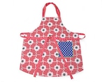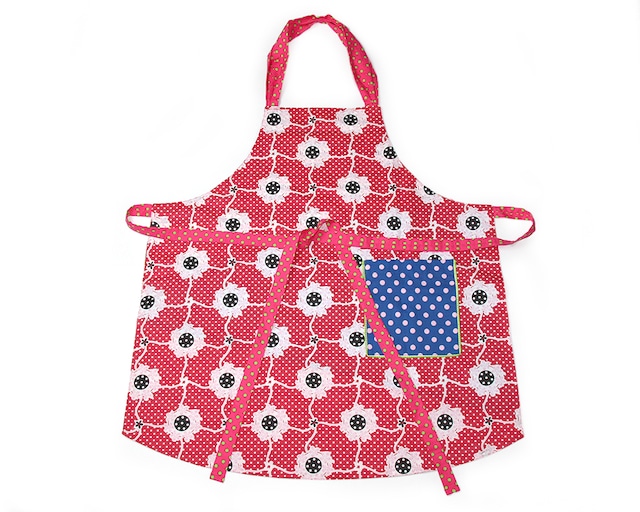 ママエプロン_リバーシブル ネイビーチェックと赤い花